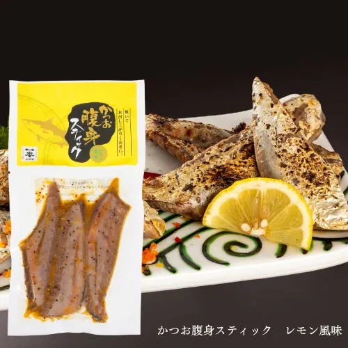 一本釣りで一匹づつ丁寧に釣り上げ、急速冷凍したかつおの腹皮をさっぱりレモン風味で。