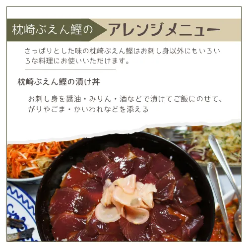 通常キロ単位で販売している枕崎ぶえん鰹を食べきりサイズの200gでご用意しました。