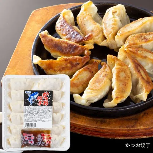 | 原材料 | *餃子[野菜{キャベツ(国産)、玉ねぎ(国産)、ニラ(宮崎産)、生姜(鹿児島産)、ニンニク(鹿児島産)}、皮(小麦粉、植物油脂、小麦蛋白、粉末油脂、食塩)、かつお(鹿児島産)、小麦粉、魚醤、ごま油、砂糖、鶏エキス、醤油、食塩、唐辛子、加工でん粉、調味料(アミノ酸等)、(原材料の一部に乳、大豆を含む)] *たれ[醤油、醸造酢、砂糖、発酵調味料、調味料(アミノ酸等)、カラメル色素、甘味料(ステビア)、(原材料の一部に大豆、小麦を含む)] |