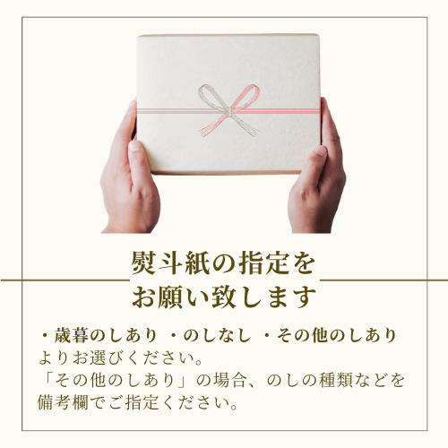 ご注文時に ・歳暮のしあり ・のしなし ・その他のしあり よりお選びください。