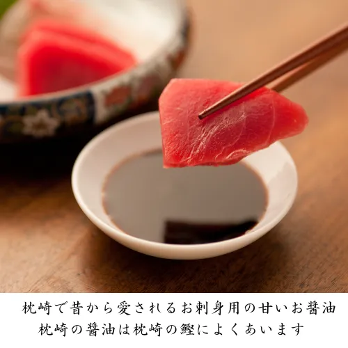 枕崎で昔から愛されるお刺身用の甘いお醤油です。